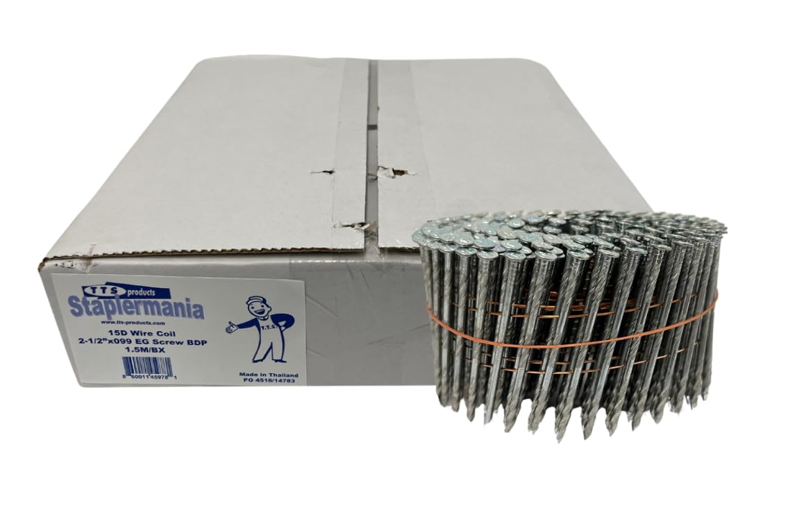 - 15 Degree Wire Coil Nail Electro-Galvanized 2-1/4" X .099 Screw Shank 1,500/Box Will fit most 15 degree wire coil nailers