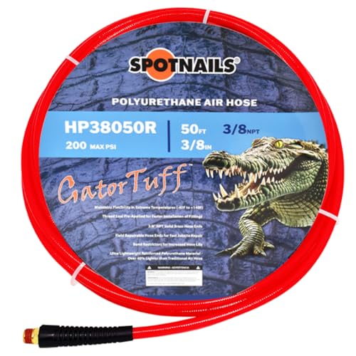 3/8" x 50' Polyurethane Air Hose (Red) – No Fittings – 3/8" NPT – Lightweight, Flexible, Industrial Air Hose