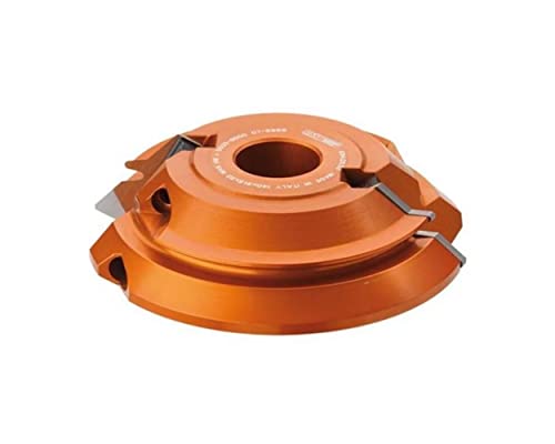 Details: CMT lock miter cutter head bits are ideal for milling miter joints in max 1" stock. The quick and easy way to accurately create boxes, stretcher bars, frames and any assortment of right angle or parallel joint projects. The lock miter cutter head produces perfectly fitting 45Degree degree miter joints in two steps. First, make the cut with the workpiece in the horizontal position then make the cut with the workpiece in the vertical position. By cutting boards in the horizontal position - first with the inside face down and then with the inside face up - you can mill rock solid parallel glue joints. Excellent results in most materials but ideal in solid wood and in coated and uncoated man made materials. Tool features heavy duty aircraft aluminum body, 2 solid carbide knives, manual feed and pins for the automatic positioning of the knives.
