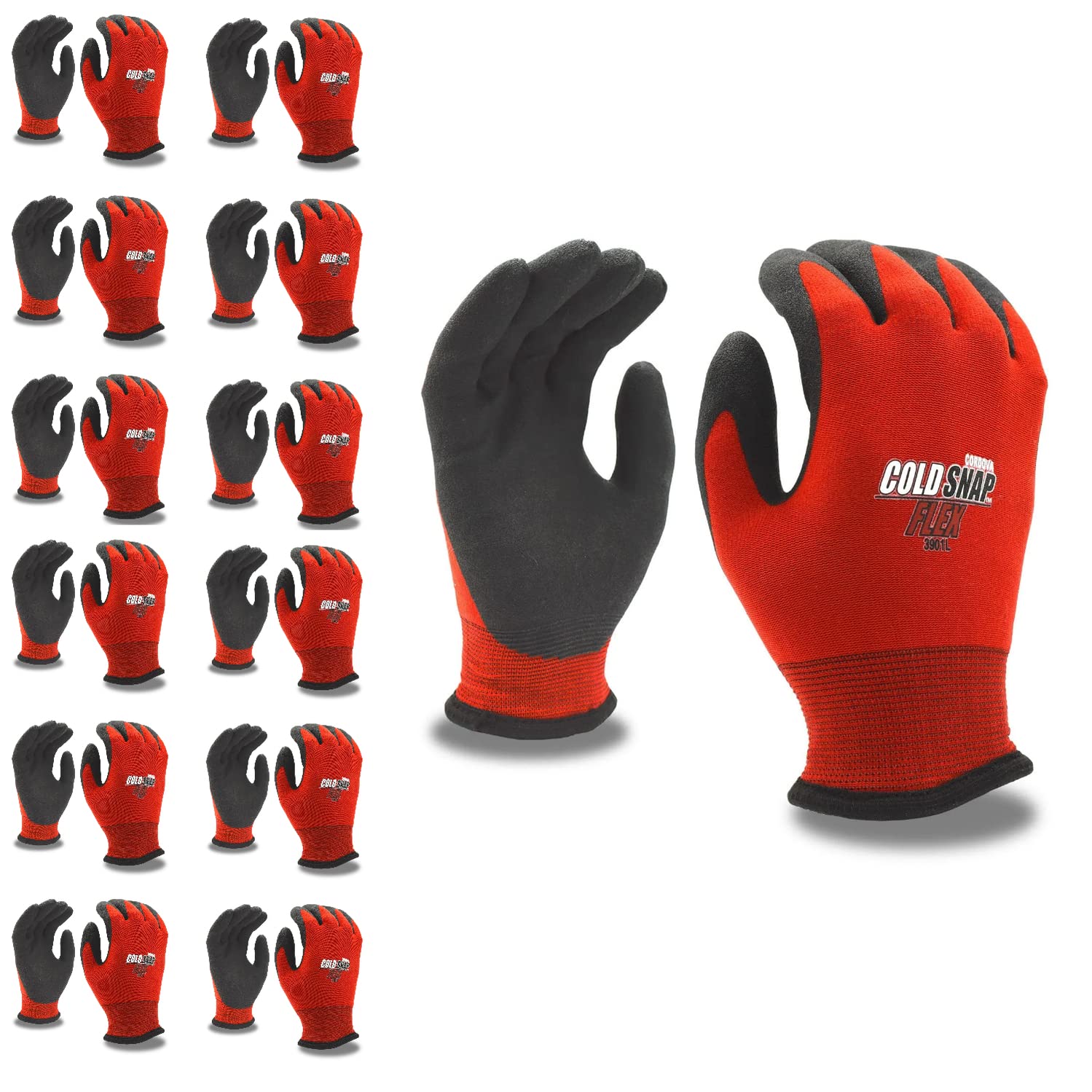 Cordova Cold Snap Flex Gloves, Two-Ply, Red Nylon Shell, Terry Lining, Black Foam PVC Palm, ANSI Cut Level A3, 12-Pack
