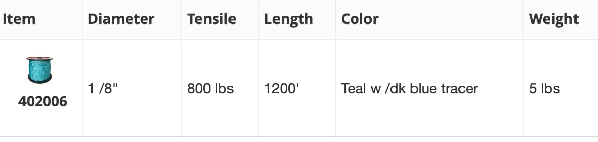 CWC BLUE STEEL™ ROPE - 1/8" X 1200' TEAL/GREEN W/DK BLUE TRACER