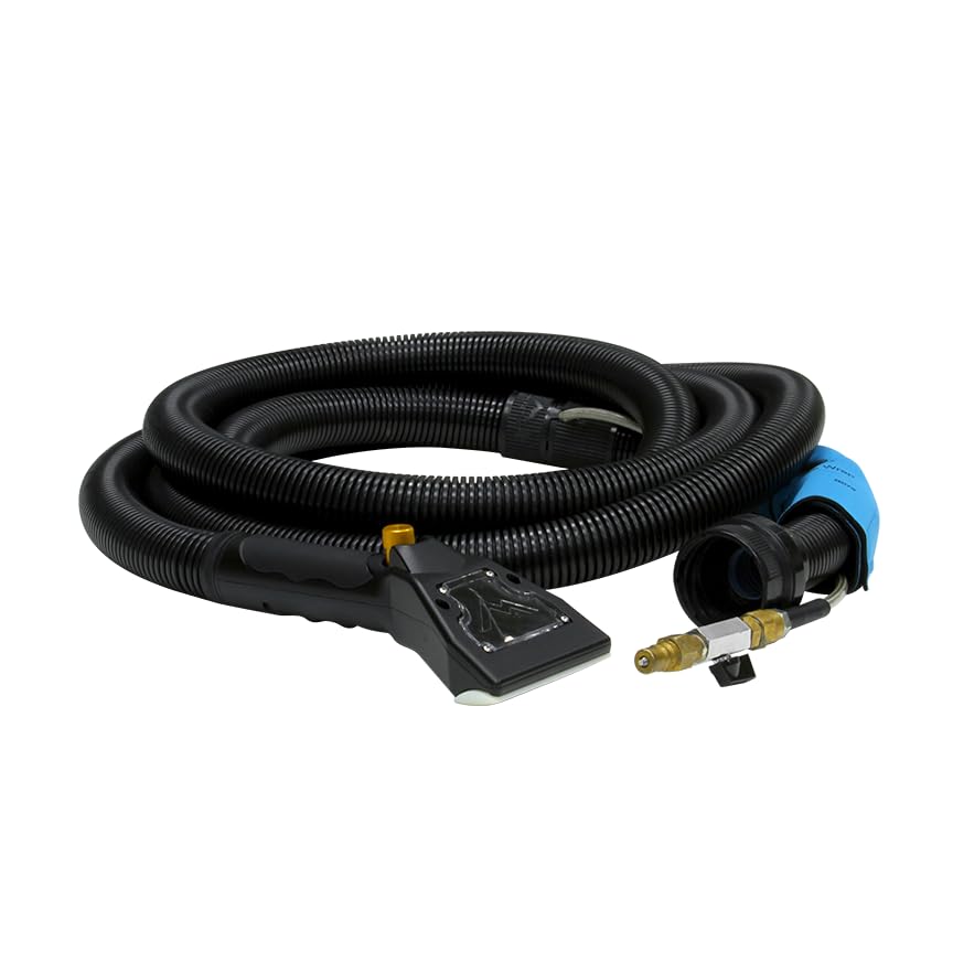 Introducing the last upholstery tool you’ll ever need! The Mytee Dry GT features dual glide slots and a unique spray bar that leaves upholstery cleaner quicker, plus a new fully metal housing so durable you might just give it to your grandkids one day. Retaining the incredible ergonomics of the classic Mytee Dry, this tool’s triggerless design protects against carpal tunnel syndrome and other symptoms of wrist strain. If you want a continuous-flow tool that cleans in both directions with zero over-spray, the Mytee Dry GT will outlast any other option out there, and help your wrists last longer too! Features: Sleek, triggerless design reduces fatigue and hand strain. The shear effect created by the 22 individual spray orifices ensures an even clean without over-wetting or streaking. Dual PTFE glide slots allow for cleaning in both directions and leaves upholstery drier for rapid turnaround Black, powder-coated, all-metal housing withstands daily use for years to come. Made from a lightweight alloy this metal housing only weighs 1oz more than the previous plastic version! Clear sight window allows you to see dirt and grime being extracted. Easy-adjust flow valve lets you control the flow level or stop it completely. Machine end shut-off valve with an inline mesh filter built-in to protect the tool from any debris or sediment. Pre-installed on an extra flexible 15 ft. vacuum and solution hose combo. Package Includes: G166 Pack of 2 comfort grips, one black and one blue H122V 2” to 1.25” Cuff-Lynx reducer H655 1.5” barbed coupler H943 1.25″ x 1.5″ vinyl hose cuff G079 Heatguard hose wrap If you own previous models of the Mytee Dry tool (8400DX, 8400M), your tool can be updated to the current version with our upgrade kit.