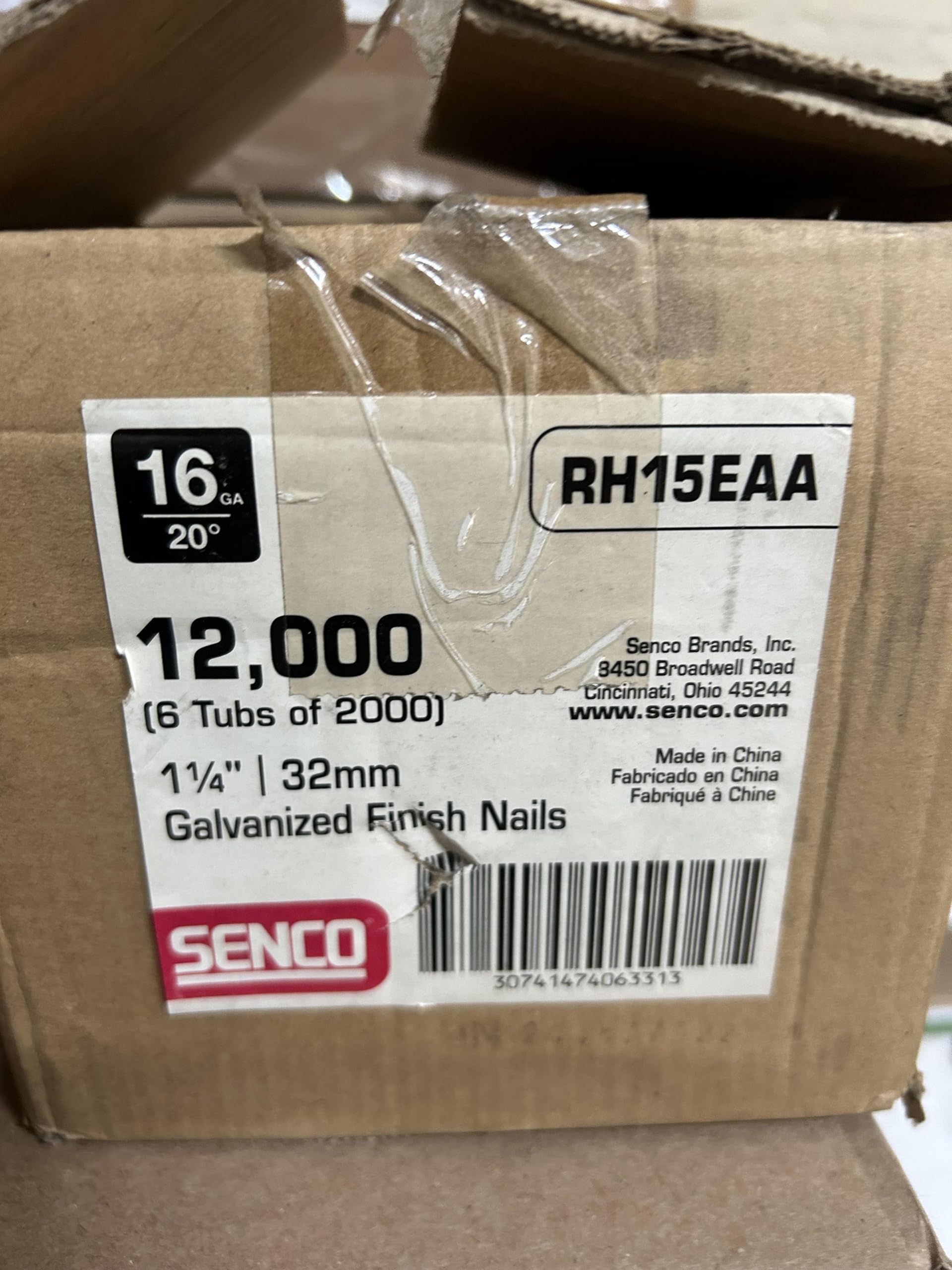 SENCO 16 GA. ANGLED STRIP ANGLED STRIP FINISH NAILS (6 tubs of 2000) #RH15EAA