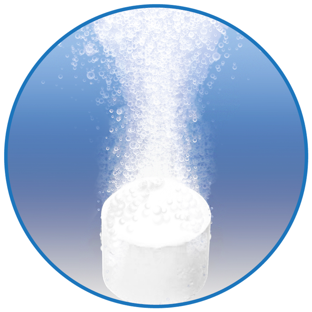 • Concentrated Tablet Formula – Creates a chlorine-based cleaning and sanitizing solution when mixed with water