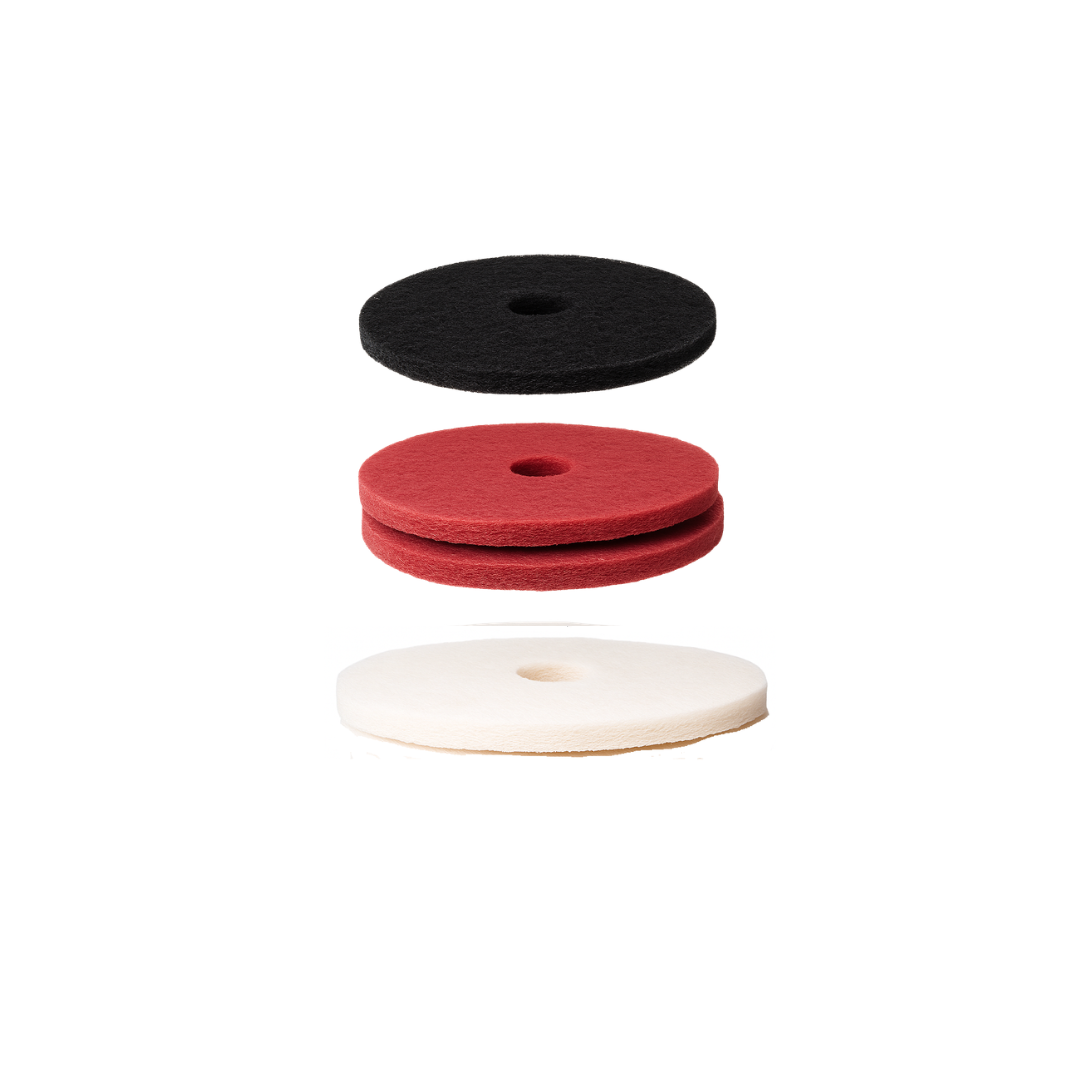 - Complete Starter Kit – Includes 4 floor pads: 1 Black Stripping, 2 Red Buffing, 1 White Polishing,