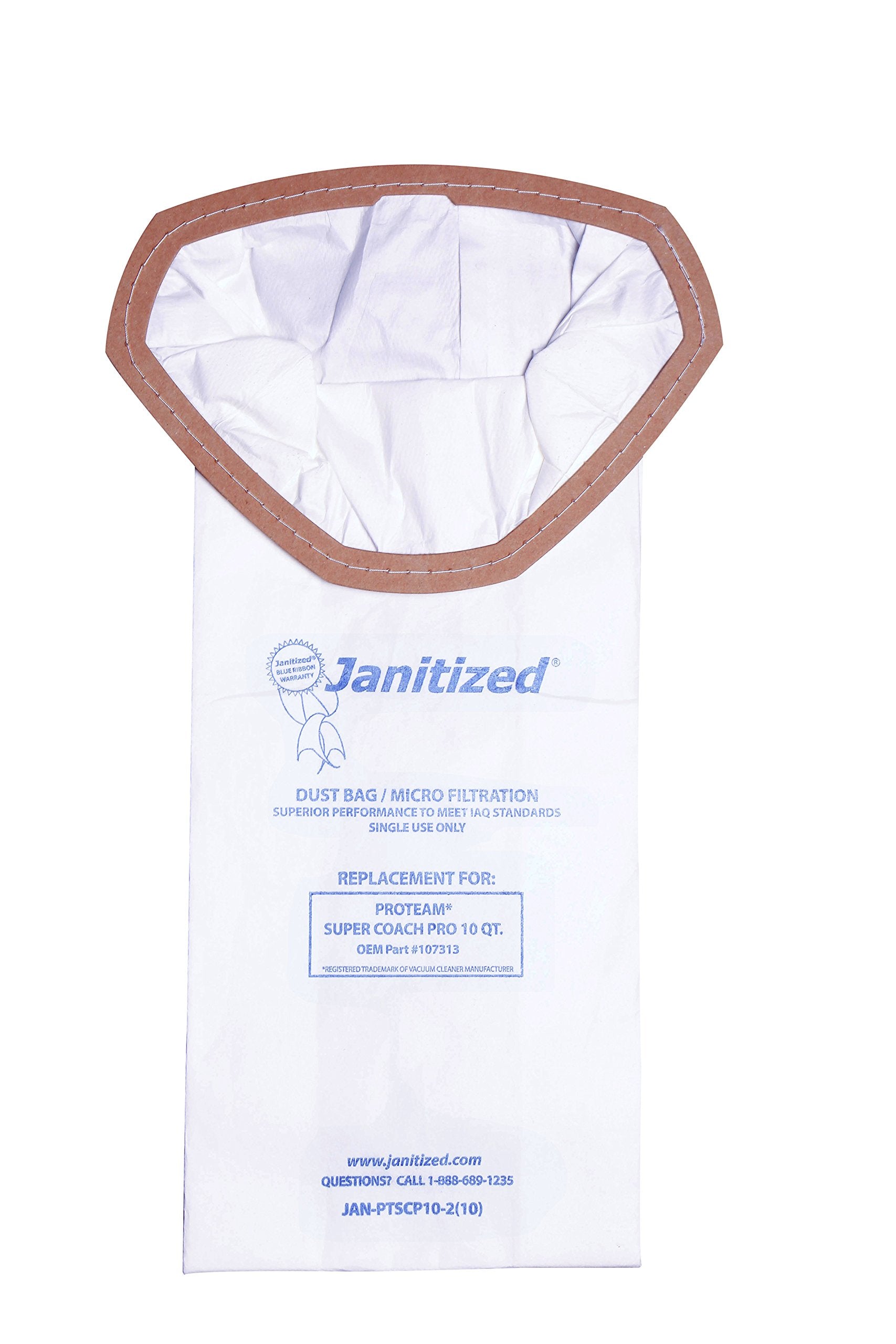 Janitized Vacuum Filter Bags Designed to fit proteam Super Coach pro 10, 100/carton