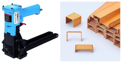 TTS Products Carton Closing Stapler Kit – Pneumatic Box Stapler with 2,000 Copper-Coated 16GA 1-3/8" Wide Crown 5/8" Staples – Heavy Duty Packaging & Shipping Sealing Tool